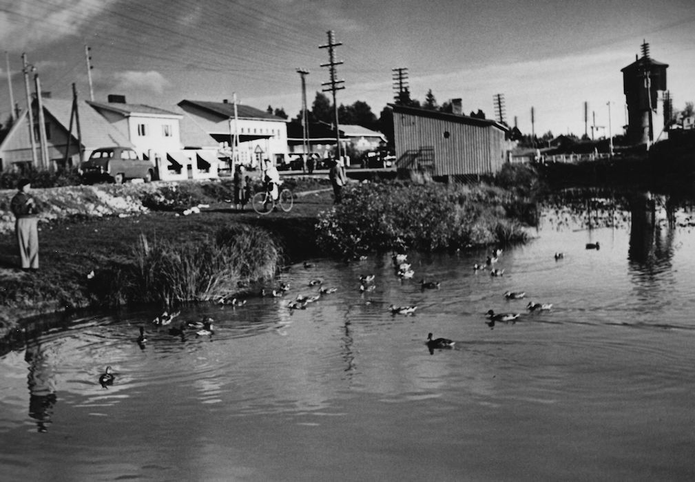 Tuusulanjärven tulvaa jäiden lähdön jälkeen 1950-luvun alussa (nyk. rantapuisto)