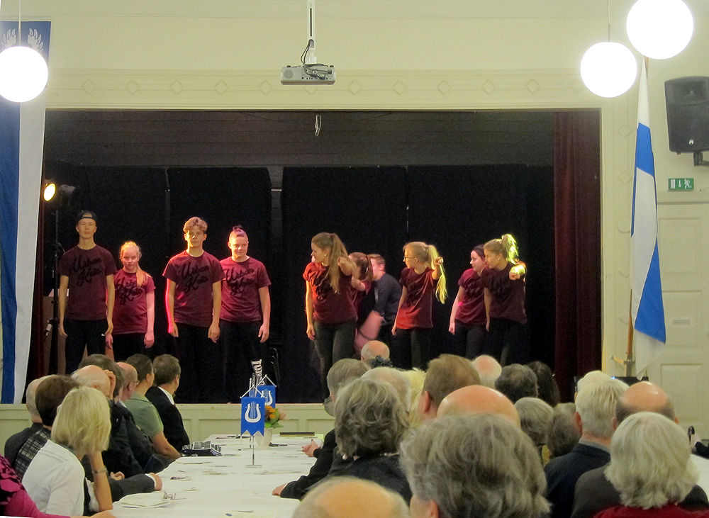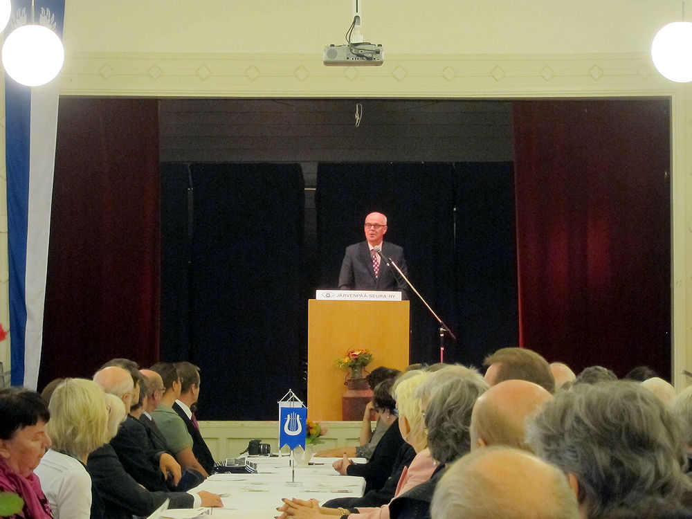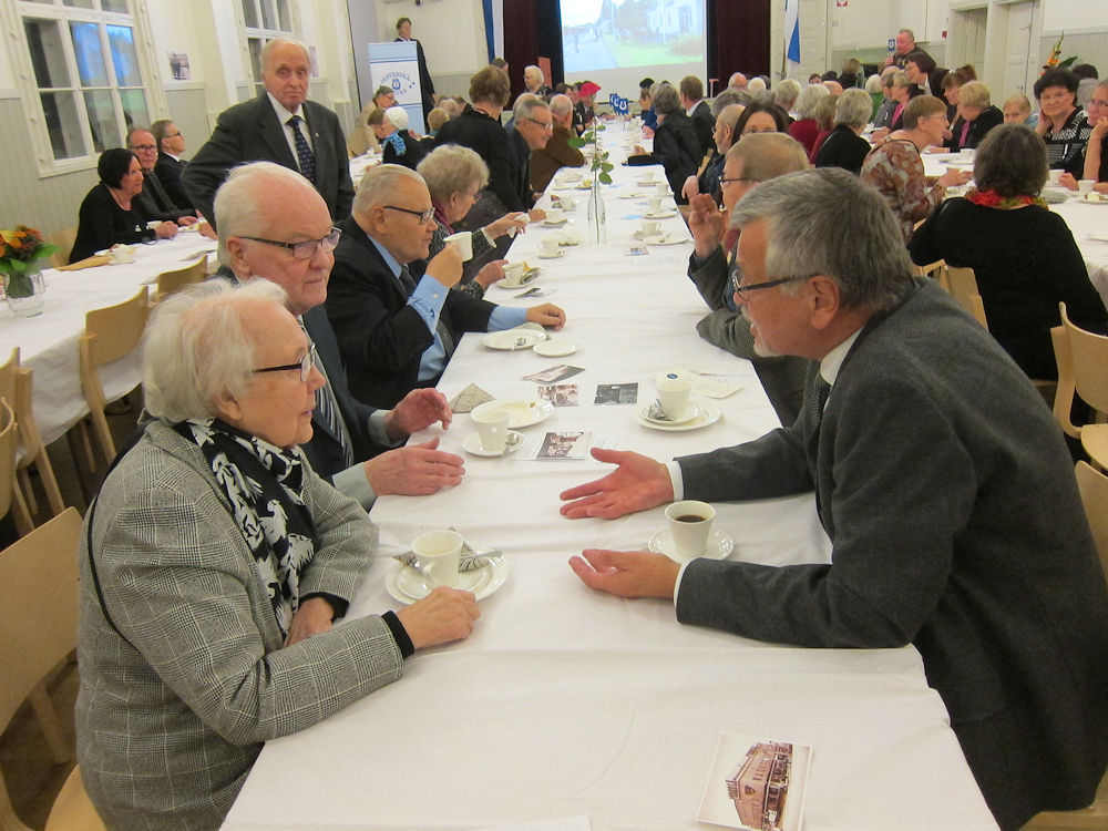 Juhlavieras Väinö Myllyrinne pystyttäjineen