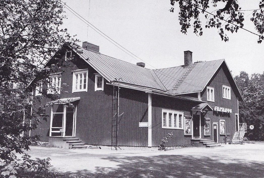 Filmilinna toimi Työväentalossa Torpantiellä Simosen myytyä yrityksensä Martti Sierannalle. Sisustus esirippuineen oli siirretty vanhasta Filmilinnasta. Kuva vuodelta 1983.