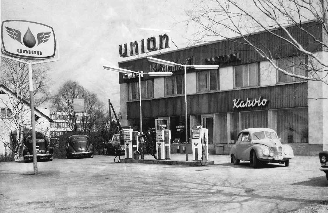 Pesosen Autohuolto, Yhteiskouluntie 13. Kuvattu 1960-luvun lopussa.