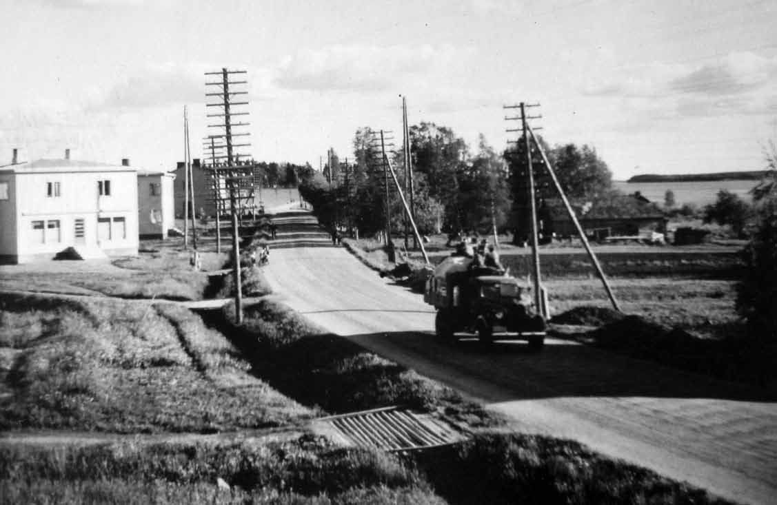 Kuva Tynkkysen kaupan katolta kesäkuussa 1941 Vanhalle Valtatielle, nykyiselle Sibeliuksenväylälle. C Pentti Tynkkynen