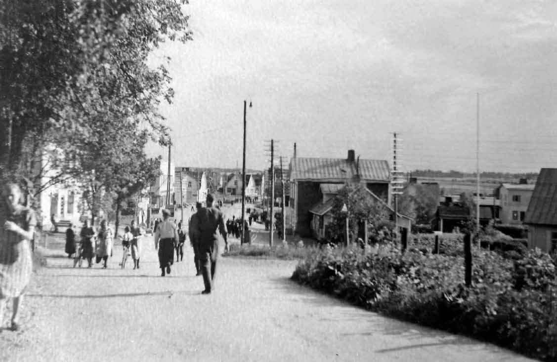 Asemanmäeltä 1942 otettu kuva Vanhalle Valtatielle, nykyiselle kävelykatu Jannelle. C Pentti Tynkkynen