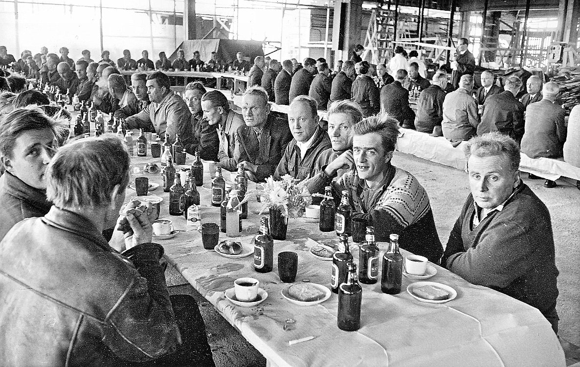 Harjakaiset 1963. 4. oikealla Erkki Kaikkonen (Helka Vuorion veli) ja 8. oik. muurari Arvi Seppänen.