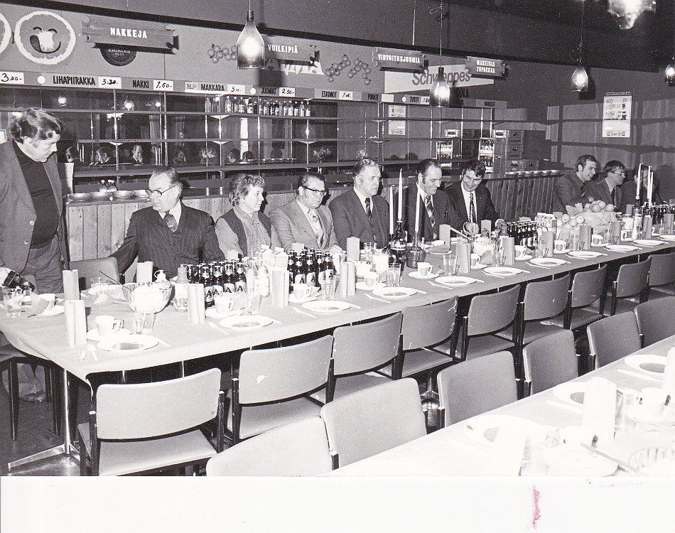 Osuuskauppa Perhelän johtoa, vieraana mm. Veikko Helle.