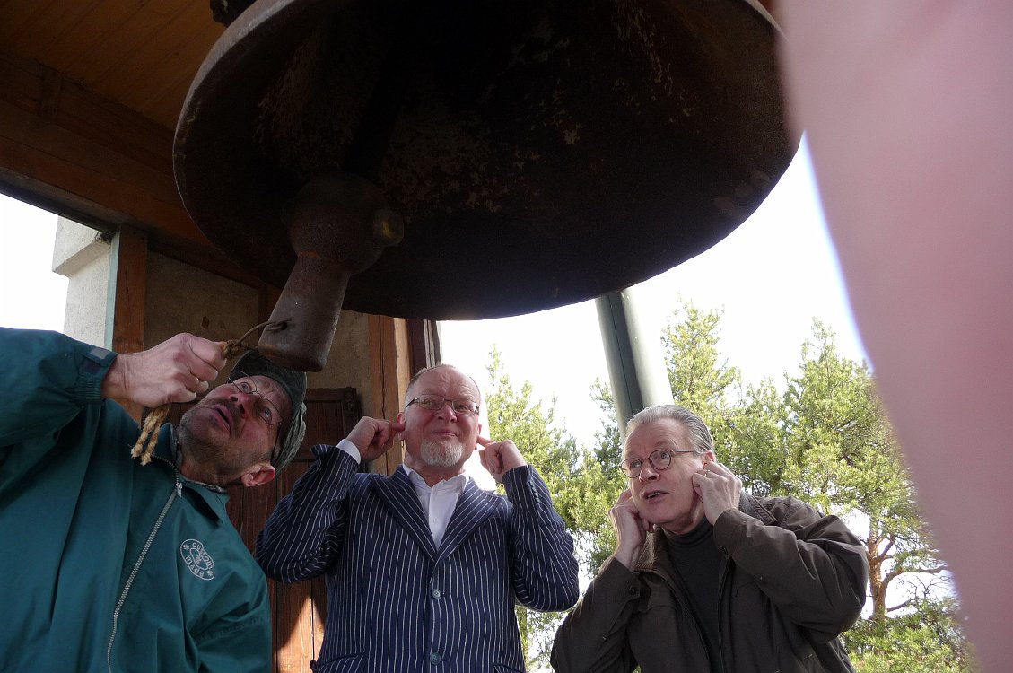 Vanhankirkon kello on saatu Vahvialasta. Vas. Arvi Kekäläinen, Jaakko Suokas ja Arto Luode soittivat vapaaehtoisina kelloa.