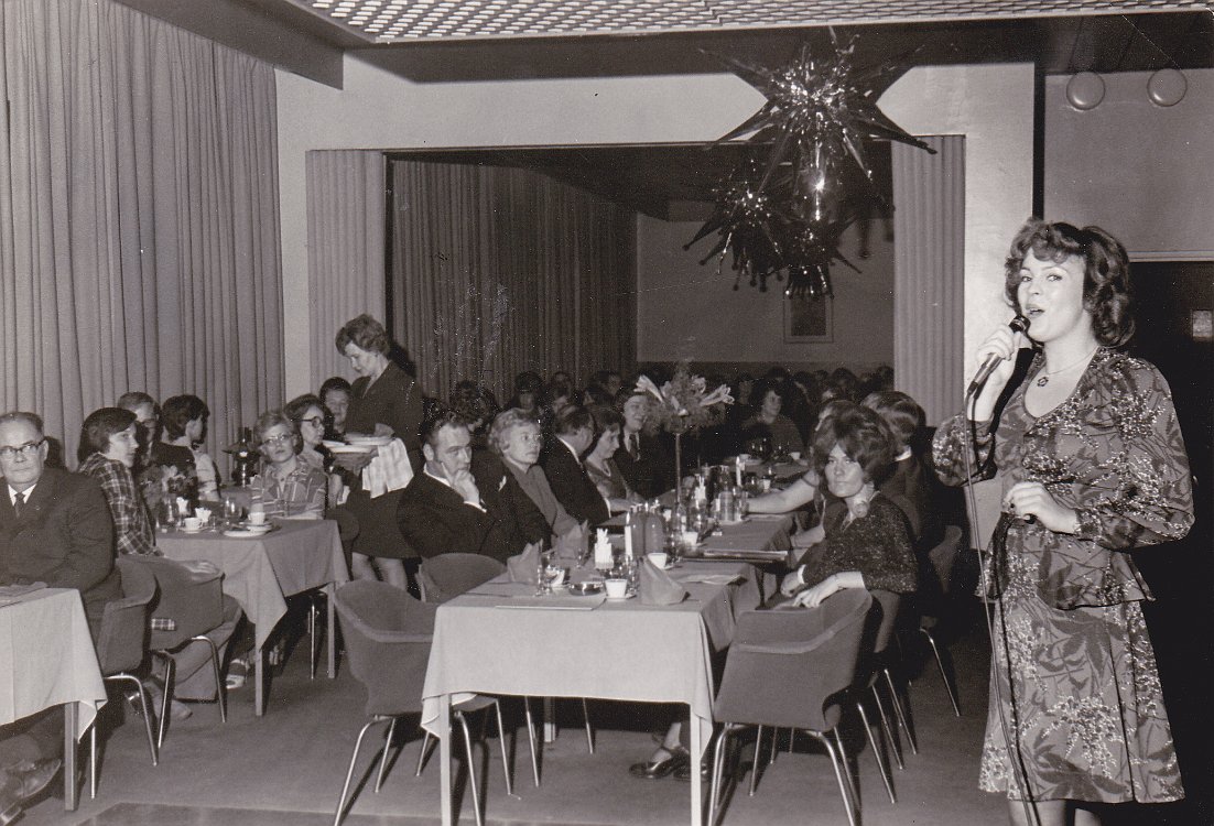 Tanssitaituri Perhelän ravintolassa taustalla hovimestari Marjatta Anttila.