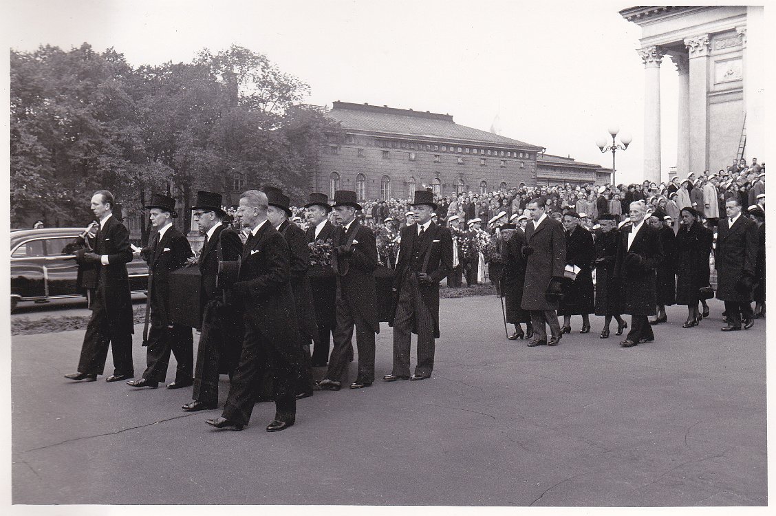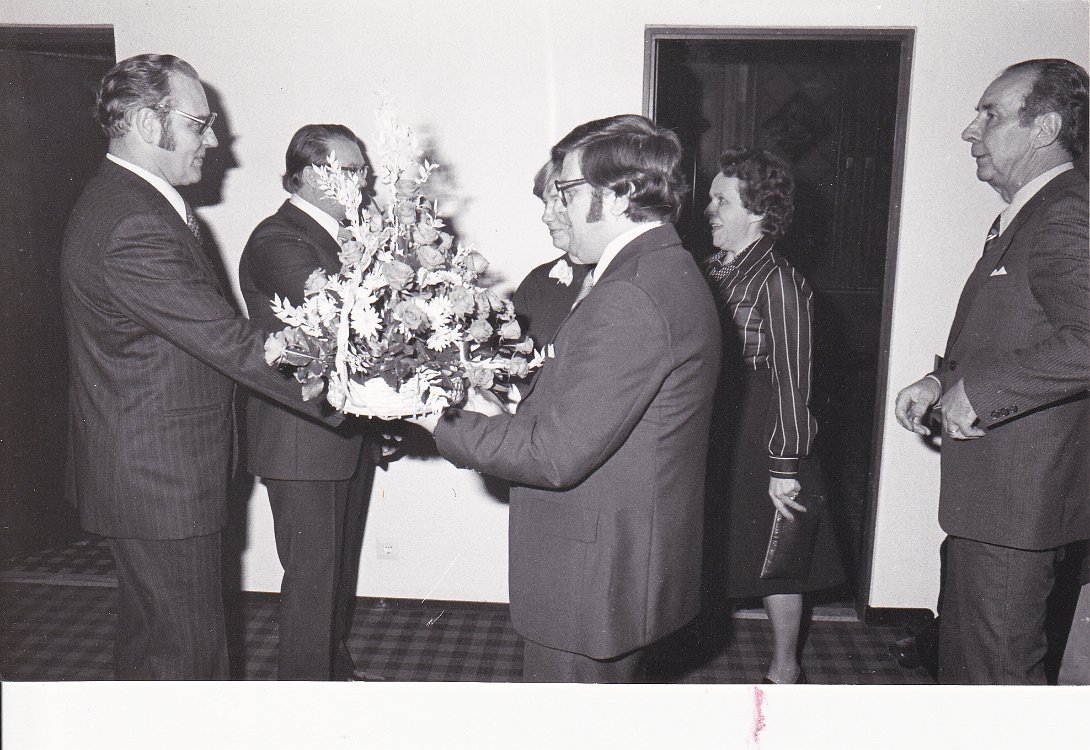 Onnittelukäynti Hummerissa vas. Aarne Sukander, Alpo Rantala, Esko Joensuu, Matti Hankonen, Toivo Kolo, Kalle Turkka, Kalevi Rajala ja ??