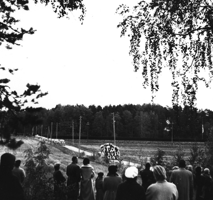 Osuusliike Perhelän 60-vuotisjuhlat v. 1968 vanhalla torilla Mannilantien varrella. Taustalla kirjasto ent. maidontarkastamo.