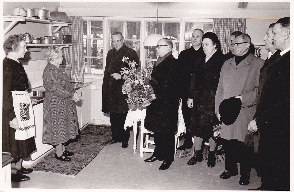 Hummerissa onnittelijoina taustalla Aune Wahlsten ja Risto Mäkinen